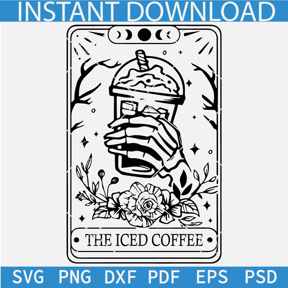 The Iced Coffee Tarot Card SVG, Skeleton Hand with Coffee SVG, Iced Coffee Skeleton Hand Tarot SVG